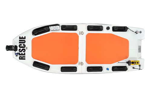 救援負載能力250kg-48H/前進速度10節(jié)(5m/s)/自展充氣時間32秒/遙控距離1000米/自動入水識別/可營救7-8人